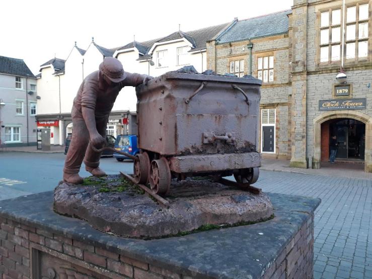 My walks to and from the ground from the railway station suggested a neat town that is proud of its industrial heritage. There is firm evidence for this in Market Square, where Colin Telfer’s sculpture “The Scutcher” stands in front of the 1879 Clock Tower. A scutcher’s task was to stop the heavy iron ore tubs by thrusting a metal bar through the wheels – it required a hard man to do a hard job – and the public display is a fine tribute.