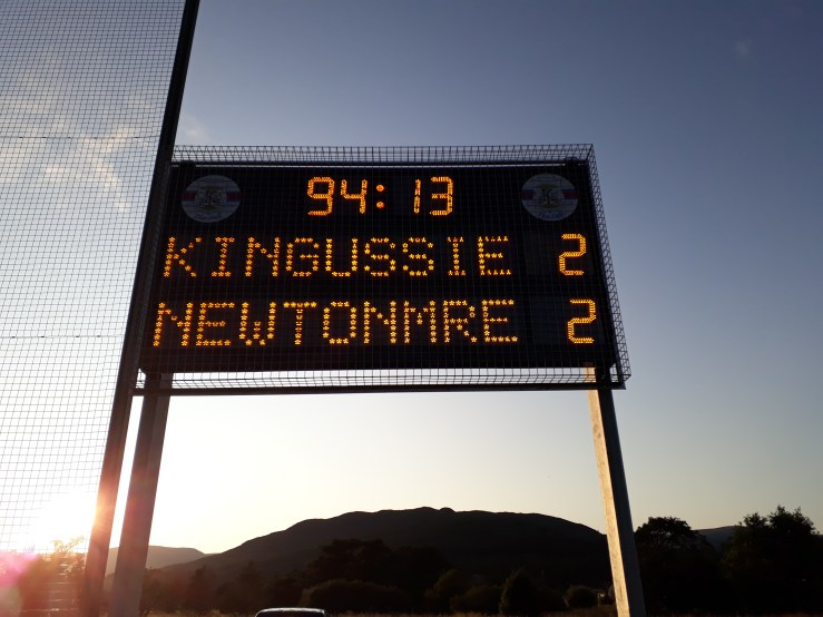 The brief match report in today’s edition of The Scotsman states that Kingussie’s goalscorers were Ruaridh Anderson and James Falconer. The Newtonmore goals were scored by Fraser MacKintosh and Conor Jones.
